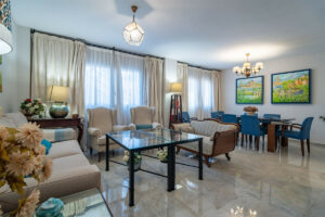 La propiedad se encuentra en un edificio clásico de 1967 y ha sido reformada íntegramente hace pocos años cuidando cada detalle para ofrecer comodidad y elegancia. La vivienda cuenta con 3 amplios dormitorios uno de ellos con vestidor y baño en suite además dispone de dos baños adicionales con ducha e incluye un patio exclusivo perfecto para tender la ropa y ventilar las estancias interiores. La reforma incorpora ventanas de alta calidad con aislamiento térmico y acústico todas con mosquiteras suelos modernos y puertas lacadas instalaciones eléctricas y de fontanería renovadas cocina totalmente equipada con sistema de ósmosis y armarios empotrados en todas las habitaciones.