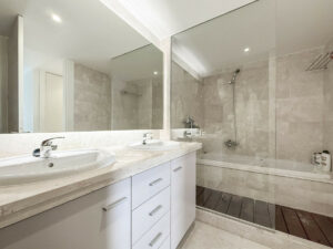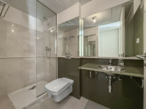 Los dos dormitorios de invitados son dobles, con armarios empotrados y grandes ventanales orientados a las zonas verdes. La propiedad cuenta además con dos baños completos, ofreciendo máxima comodidad y privacidad.