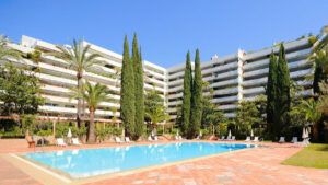 Rara oportunidad de comprar un exclusivo apartamento en el codiciado complejo Don Gonzalo, a pocos pasos de la popular Playa de Fontanilla y el agradable paseo marítimo de la Milla de Oro que conduce hasta Puerto Banús.