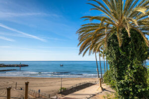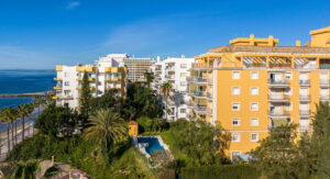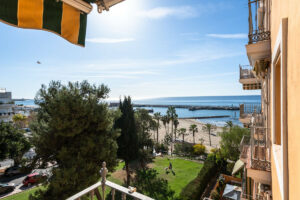Estupendo apartamento en ALQUILER de 3 dormitorios y 2 baños completos (bañera y ducha), con una terraza ideal con vistas al puerto de Marbella, incluye plaza de garaje subterránea, en primera linea de playa en La Bajadilla.