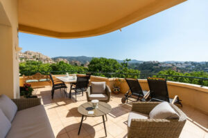 Precioso apartamento de 3 dormitorios en un prestigioso complejo de Elviria, con una ubicación ideal junto a Greenlife Golf y cerca de todos los servicios y la playa. Disfrute de preciosas vistas al mar, la costa y la vegetación desde esta vivienda con orientación este y oeste. Incluye cocina totalmente equipada, aparcamiento privado y comunitario, una impresionante piscina comunitaria y exuberantes jardines. Una combinación perfecta de comodidad y ubicación.