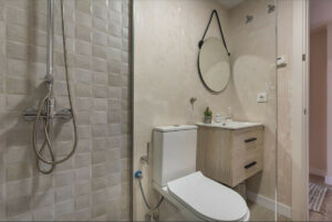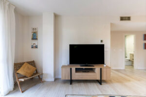 En el interior, el apartamento cuenta con una estética moderna, creando un ambiente sofisticado adecuado tanto para vacaciones como para teletrabajo. Tenga en cuenta: La propiedad se vende sin amueblar, lo que le permite personalizar el interior a su gusto y estilo.