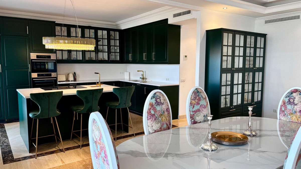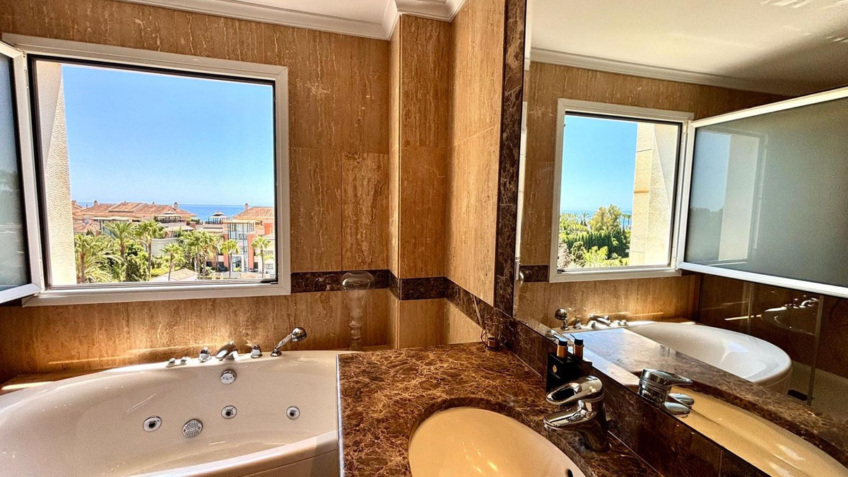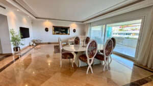 Ubicado en el prestigioso complejo El Embrujo en Puerto Banús, este apartamento cuidadosamente mantenido ofrece una combinación excepcional de amplitud, calidad y comodidad a tan solo unos pasos de la playa. Cuenta con tres amplios dormitorios con baños en suite y un total de cinco baños, con aproximadamente 300 m² construidos incluyendo una terraza de 18 m² ideal para disfrutar al aire libre. Diseñado con acabados de alta calidad, ofrece interiores generosos y elegantes para una vida verdaderamente confortable. Los residentes disfrutan de excelentes servicios como piscina exterior, piscina climatizada, estacionamiento seguro y un reconocido restaurante de cocina de Oriente Medio en el propio complejo. El Embrujo, Banús es uno de los desarrollos más codiciados de Puerto Banús, famoso por su ubicación privilegiada y servicios de primer nivel.