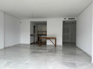 El apartamento cuenta con tres dormitorios, cada uno con acceso directo a la terraza, creando un estilo de vida interior-exterior sin interrupciones. La distribución de planta abierta y los acabados modernos otorgan a la propiedad una sensación fresca y elegante en todos sus espacios.