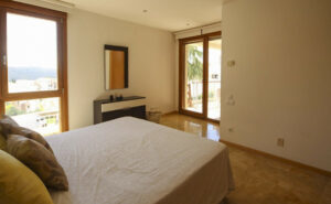 El piso ofrece vistas panorámicas hacia el mar Mediterraneo y el campo circundante.