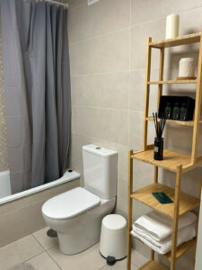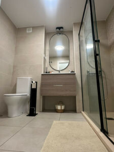 Cocina moderna equipada y baños impecables.