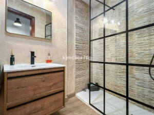 Ambos baños están decorados con buen gusto: uno cuenta con ducha de cristal, detalles en cerámica decorativa y mueble de lavabo de madera; el otro incorpora elementos vegetales que aportan un toque natural.