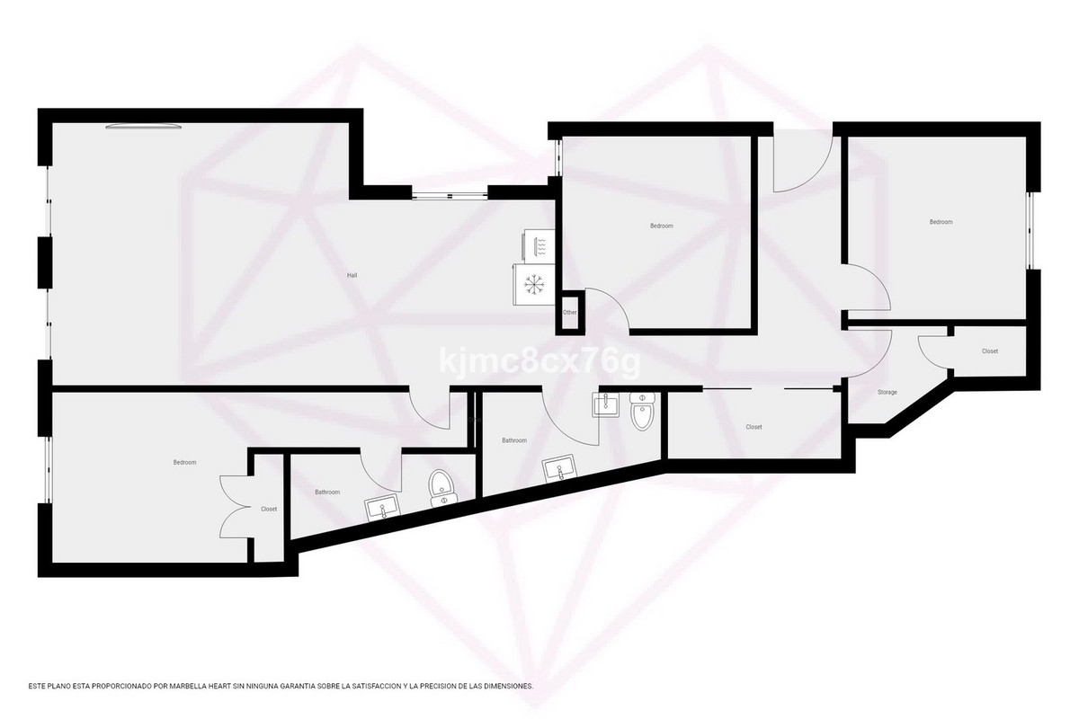 Ubicado en pleno centro de Marbella, este apartamento bien distribuido ofrece 76 m² de superficie útil en una sola planta. La distribución es funcional y cómoda, con un pasillo central que conecta tres dormitorios, dos baños, una cocina moderna y un amplio salón-comedor de estilo abierto.