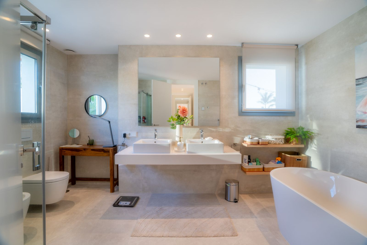 Gracias a su orientación suroeste, la propiedad disfruta de impresionantes vistas al mar y a la montaña desde todas las estancias, con panorámicas ininterrumpidas que se extienden hasta Gibraltar. El máximo confort está garantizado durante todo el año gracias a la calefacción por suelo radiante en toda la vivienda.
