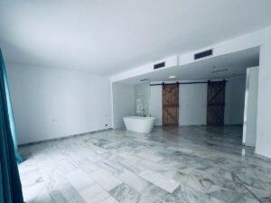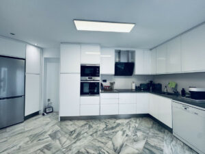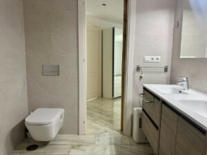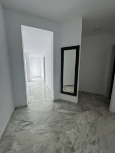Se distribuye interiormente en vestíbulo, hall, distribuidor, cocina comedor, salón, un dormitorio muy amplio con zona de estar o descanso( anteriormente eran dos dormitorios), dos cuartos de baño, y un aseo.