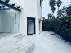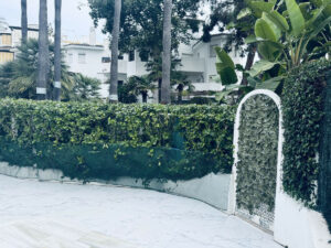 Desde la puerta del jardín accedes a urbanización espectacular con jardines tropicales y piscinas todo muy bien cuidado.A 150 m de chiringuitos y restaurantes: Chiringuito Las Mimosas, La Plage Casanis, The Beach House, Perla Blanca