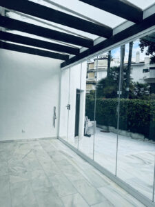 Actualmente la propiedad tiene la peculiaridad de estar dividida en tres apartamentos. pues dispone de puertas independientes para cada uno de ellos.