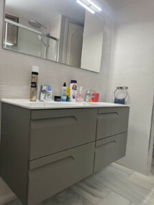 En la misma planta baja accediendo por otra entrada, encontramos un pequeño salon con cocina abierta, una habitación y un cuarto de baño.