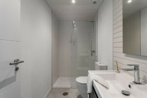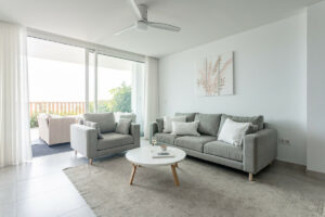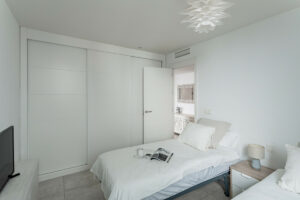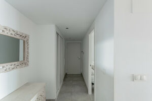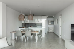 En el interior, la distribución de planta abierta integra una cocina totalmente equipada, comedor y un luminoso salón con acceso directo a la terraza mediante elegantes puertas correderas. La propiedad incluye también tres amplios dormitorios y dos baños modernos con duchas espaciosas y suelo radiante, diseñados para ofrecer comodidad y funcionalidad.