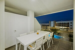 Espacioso y luminoso apartamento en el centro del complejo, con vistas directas a la piscina y total privacidad. Dispone de 3 dormitorios, cocina moderna de concepto abierto, terraza elevada con zona de comedor y lounge, y capacidad para hasta 6 personas.