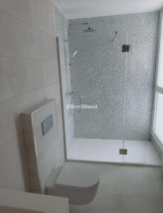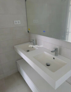 Espacios de bienestar con sanitarios suspendidos, grifería termostática de primeras marcas, platos de ducha de resina mineral, mamparas de vidrio templado y espejos antivaho iluminados. Materiales nobles y acabados impecables.