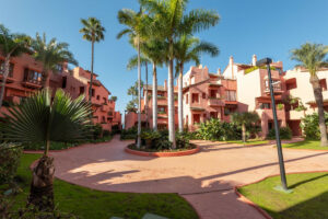 La comunidad ofrece seguridad las 24 horas del día y jardines tropicales impecablemente cuidados, complementados por dos piscinas al aire libre con cascadas y lagos artificiales. Los residentes también tienen acceso a un gimnasio bien equipado y relajantes instalaciones de sauna. A solo unos pasos se encuentra el paseo marítimo frente a la playa, mientras que los restaurantes de alta cocina y los renombrados hoteles de 5 estrellas como Las Dunas e Ikos Resorts están a poca distancia a pie.