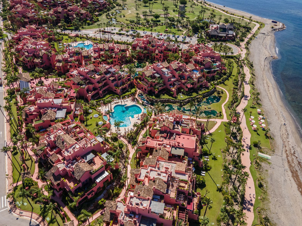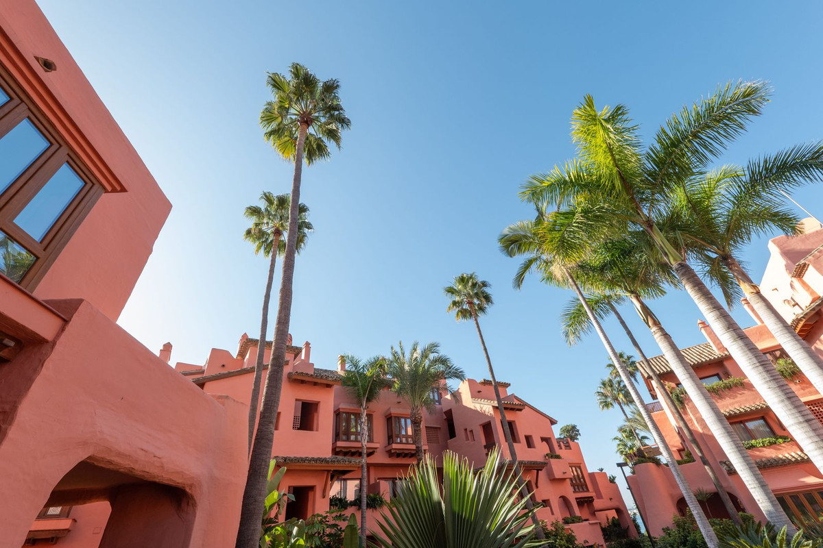 La comunidad ofrece seguridad las 24 horas del día y jardines tropicales impecablemente cuidados, complementados por dos piscinas al aire libre con cascadas y lagos artificiales. Los residentes también tienen acceso a un gimnasio bien equipado y relajantes instalaciones de sauna. A solo unos pasos se encuentra el paseo marítimo frente a la playa, mientras que los restaurantes de alta cocina y los renombrados hoteles de 5 estrellas como Las Dunas e Ikos Resorts están a poca distancia a pie.