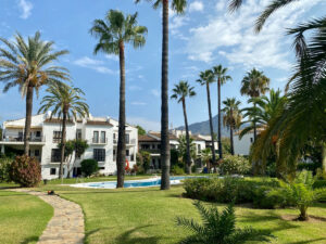 Un lugar perfecto para vivir. Consta de un gran salón / comedor con chimenea, 3 dormitorios y 3 baños, con acceso directo a los jardines. El complejo está situado entre Las Brisas y Aloha Golf, a 5 minutos en coche de Puerto Banús y la playa.