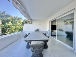 Este apartamento excepcionalmente amplio y luminoso ha sido renovado recientemente con materiales de primera calidad y mobiliario de diseño, ofreciendo un hogar listo para entrar a vivir en una de las comunidades más prestigiosas de Nueva Andalucía.
