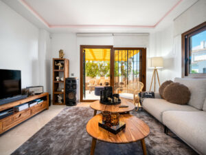 Este impresionante apartamento en planta baja, Apartamento Aldea Blanca, ofrece una oportunidad de alquiler con opción a compra. Cuenta con tres dormitorios y tres baños, todos completamente renovados en 2025 con un diseño moderno y elegante. El salón y comedor de planta abierta se integran a la perfección con una cocina totalmente equipada. Grandes puertas de cristal se abren a dos terrazas privadas, una de ellas directamente conectada con el dormitorio principal, ideal para disfrutar de comidas al aire libre o momentos de relax.