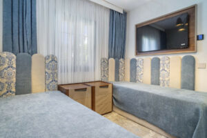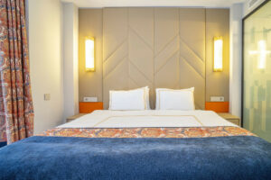 El dormitorio principal dispone de su propio baño en suite con diseño moderno, mientras que los dos dormitorios adicionales comparten un segundo baño contemporáneo — ambos con materiales de primera calidad y un estilo refinado.