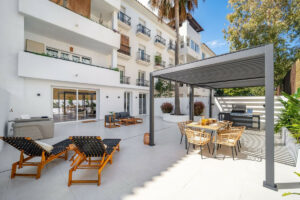 Disfrute de una vida de lujo en este impresionante apartamento en planta baja, recién reformado, situado en la mejor zona de Marbella Nueva Andalucía, a pocos pasos de Puerto Banús. Esta elegante y moderna propiedad cuenta con tres amplios dormitorios, cada uno con su propio baño privado, que ofrecen la máxima comodidad y privacidad. Además, dispone de un aseo de cortesía para invitados. El diseño contemporáneo combina elegancia y funcionalidad, creando un ambiente sofisticado perfecto para disfrutar del estilo de vida marbellí. El jardín privado ofrece impresionantes vistas a la montaña y es ideal para el entretenimiento o para relajarse con estilo, e incluye un jacuzzi privado y una cocina exterior. Tanto si desea relajarse en la espaciosa terraza como explorar el animado puerto deportivo cercano, este ático ofrece una combinación inigualable de ubicación, lujo y confort moderno.