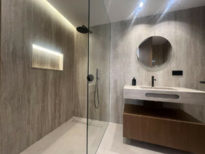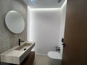 A la derecha del salón se encuentra la lujosa suite principal, que cuenta con un amplio baño en suite, vestidor y acceso a una terraza privada con inmejorables vistas panorámicas al mar—el lugar perfecto para disfrutar del amanecer o relajarse al atardecer.