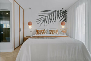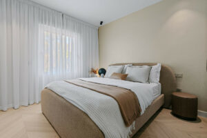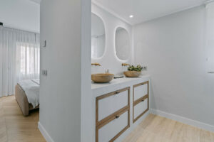 La vivienda dispone de tres amplios dormitorios, dos con baño en suite, un baño adicional y un aseo de invitados. El interior ha sido diseñado por Studio Marbella / Amura Interiors, destacando por su elegancia y acabados de alta calidad.