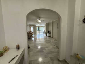 Se trata de un piso totalmente exterior con orientación sur, lo que garantiza una excelente entrada de luz natural durante todo el día. Entre sus calidades destacan los suelos de mármol y parquet, aire acondicionado, ventiladores de techo, ventanas abatibles con doble acristalamiento y puerta de seguridad acorazada.