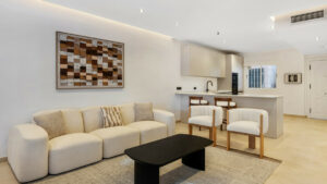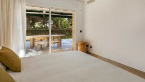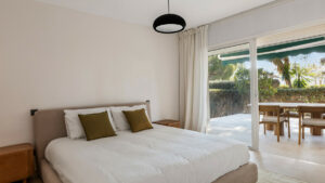 El apartamento ofrece espacios de vida excepcionalmente amplios, llenos de luz natural y acabados con un alto estándar moderno en toda la vivienda. El amplio salón-comedor de concepto abierto se conecta perfectamente con una gran terraza privada, que proporciona acceso directo al jardín, ideal para relajarse, comer al aire libre o disfrutar del estilo de vida mediterráneo durante todo el año.