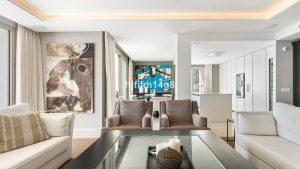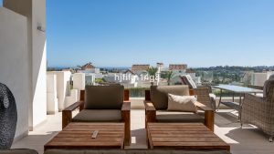 Este es un apartamento de planta baja de 3 dormitorios. En el interior, se encuentra el estado de la técnica de cocina de planta abierta con electrodomésticos Gaggenau y un salón abierto y comedor. El salón tiene acceso directo a una espectacular terraza con excelentes vistas al mar y a la montaña. Hay un jardín privado con jacuzzi. Todas las habitaciones han sido exquisitamente diseñadas y acabadas con los más altos estándares.