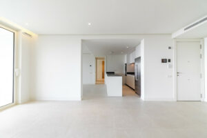 El espacioso salón-comedor de planta abierta se integra perfectamente con la cocina moderna y totalmente equipada, creando un ambiente luminoso y funcional que conecta directamente con la terraza. El diseño combina de forma armoniosa los espacios interiores y exteriores, ofreciendo una auténtica experiencia mediterránea.