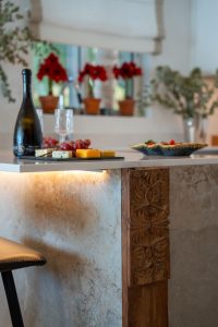 El apartamento ofrece tres amplios dormitorios y 2 baños, incluyendo una suite principal con vestidor tipo walk-in y acceso directo a la terraza, además de un aseo de invitados. Acabados en una cálida y natural paleta de colores, los interiores combinan paredes texturizadas, elementos de roble y detalles en piedra para crear un ambiente refinado y acogedor.