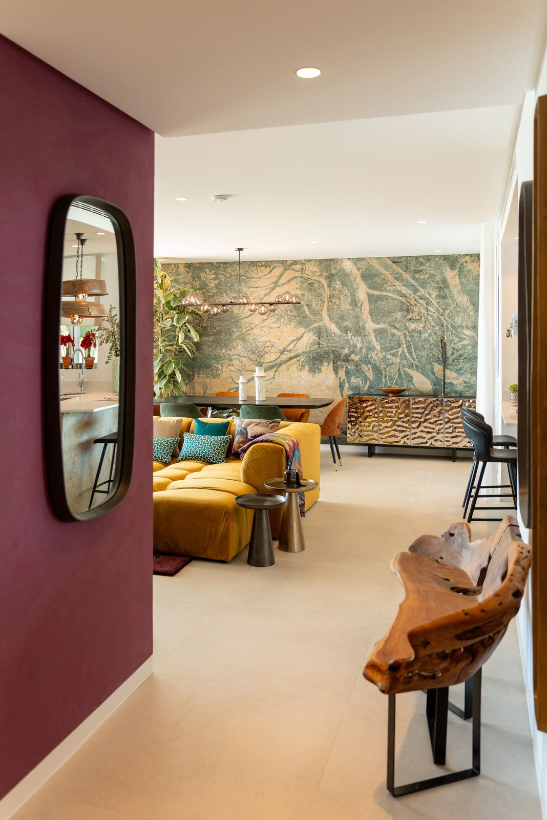 El apartamento ofrece tres amplios dormitorios y 2 baños, incluyendo una suite principal con vestidor tipo walk-in y acceso directo a la terraza, además de un aseo de invitados. Acabados en una cálida y natural paleta de colores, los interiores combinan paredes texturizadas, elementos de roble y detalles en piedra para crear un ambiente refinado y acogedor.