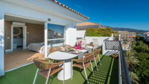 Con una ubicación privilegiada, la propiedad se encuentra a pocos pasos de la playa, de boutiques de lujo, restaurantes de primera y del prestigioso centro comercial El Corte Inglés.