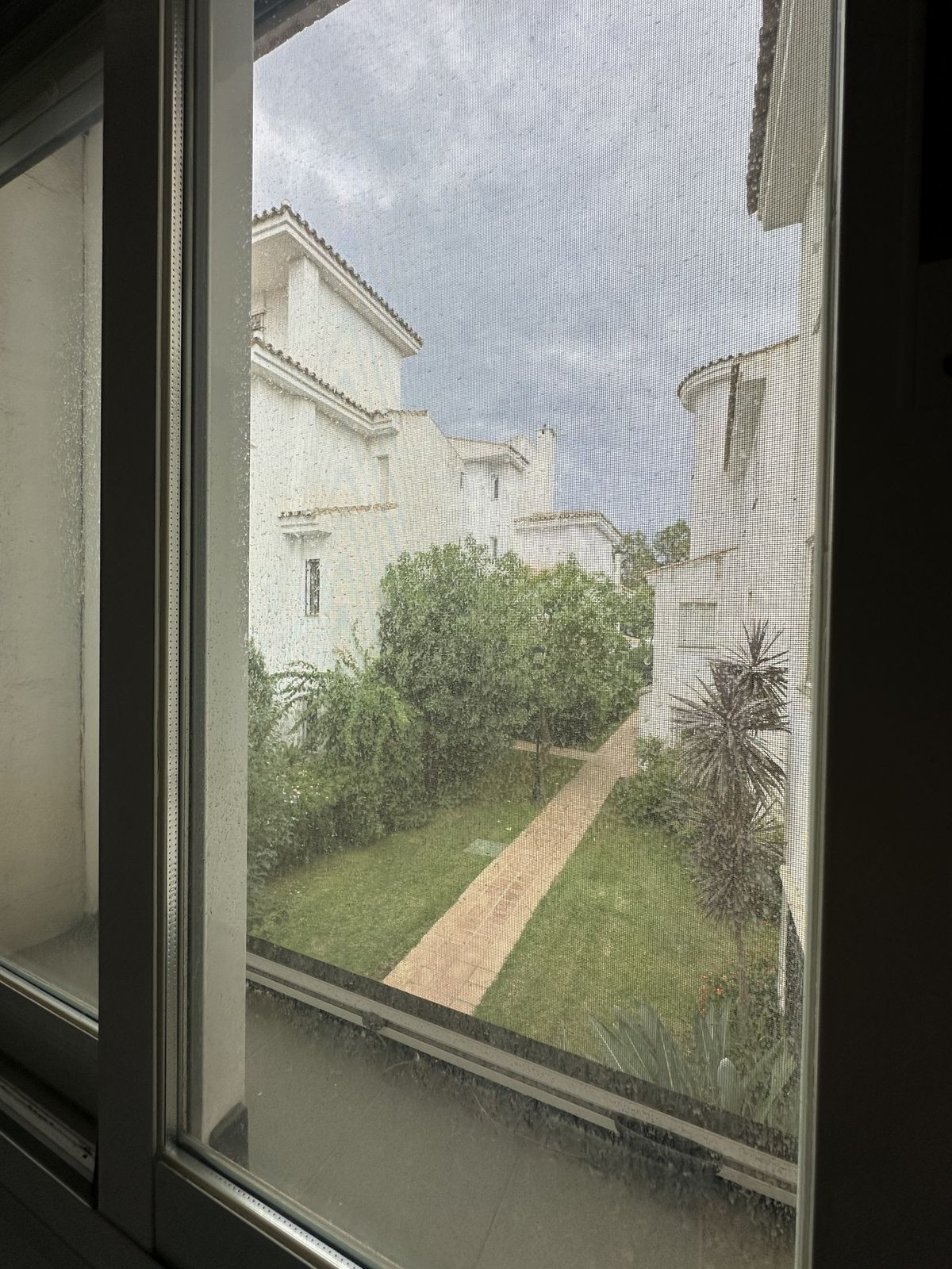 La vivienda ofrece 3 dormitorios y 2 baños en una comunidad cerrada. Cuenta con un amplio salón con chimenea, y los residentes pueden disfrutar de una gran piscina y de jardines bien cuidados con una fuente de estilo andaluz.