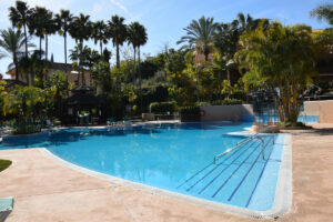 La urbanización, cerrada y con seguridad, está rodeada de bonitos jardines y tres piscinas, una de ellas climatizada.