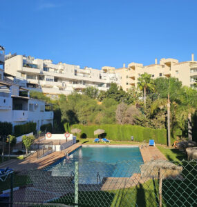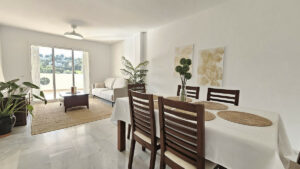 Precioso apartamento de 3 dormitorios y 2 baños en venta en la zona de Miraflores. Amplia terraza cubierta orientada al sur y oeste, con vistas abiertas a zonas verdes, al campo de golf de Miraflores y a los jardines. Ubicación tranquila y agradable, a solo unos minutos en coche del pueblo costero de La Cala de Mijas y de todos los servicios de Riviera del Sol.