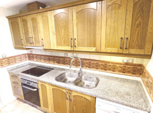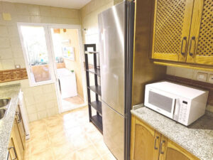 Cocina amueblada equipada con horno y vitrocerámica; además un amplio salón versátil donde disfrutar tanto del área social como familiar.