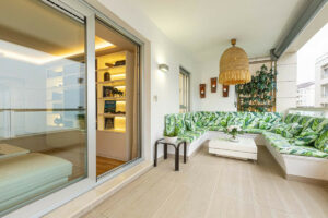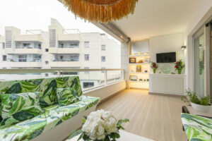 Cuenta con una cocina independiente separada del salón por una gran puerta de cristal y equipada con lavadero con acceso a un amplio patio. La superficie total es de 113 m², ofreciendo un espacio amplio y funcional. El salón se abre a una terraza de 19 m2 ideal para disfrutar del clima de la Costa del Sol. El precio de 649.000€ incluye garaje.
