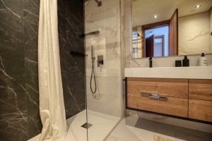 El dormitorio principal tiene baño en suite, mientras que los dos dormitorios adicionales comparten un moderno baño familiar. Acabados de alta calidad en toda la vivienda, incluyendo suelos de mármol, ventanas de doble acristalamiento y aire acondicionado central para mayor comodidad durante todo el año.