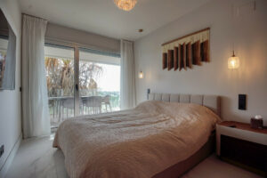 Impresionante apartamento de 3 dormitorios, completamente amueblado, ubicado en la planta media de un moderno complejo junto a la playa en San Pedro de Alcántara. Esta vivienda, con orientación este, cuenta con un amplio salón-comedor de planta abierta que da a una gran terraza cubierta, ideal para relajarse o entretenerse. La cocina está totalmente equipada con electrodomésticos de alta gama e incluye un lavadero independiente.