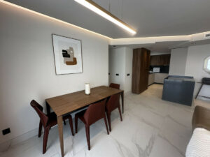 El apartamento se entrega completamente amueblado y en estado a estrenar. Dispone de un luminoso salón-comedor de planta abierta, cocina moderna totalmente equipada con electrodomésticos de alta gama y una amplia terraza acristalada, perfecta para disfrutar del clima mediterráneo durante todo el año.