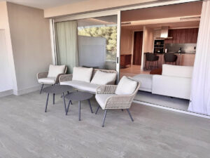 Ubicado en la exclusiva urbanización MARE, la vivienda destaca por su diseño contemporáneo, la calidad de sus acabados y una distribución práctica que conecta el salón con la terraza, creando un ambiente luminoso y acogedor.