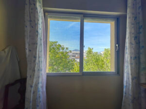 La propiedad cuenta con una amplia cocina soleada con vistas a frondosos árboles y espacios abiertos, un generoso salón-comedor que da a una terraza cubierta con vistas a la ciudad y al paisaje montañoso en la distancia. Un pasillo central conduce a los tres dormitorios y a un moderno cuarto de baño con ducha a ras de suelo.