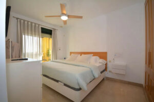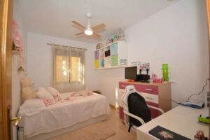 Este piso de primera planta con orientación Sur y vistas parciales al mar, cuenta con tres cómodas habitaciones equipadas con armarios empotrados, dos baños con excelentes acabados (uno en suite), amplio salón iluminado con acceso a terraza totalmente acristalada, cocina renovada en espacio independiente además de plaza de garaje y trastero.