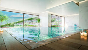 Entre las piscinas de Oasis 325 se encuentra un espectacular spa con piscina cubierta, así como un gimnasio totalmente equipado y una sala polivalente, todo ello diseñado para enriquecer el estilo de vida de los residentes.