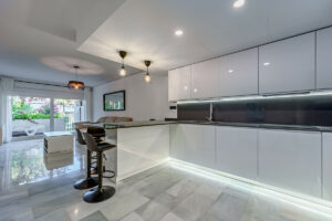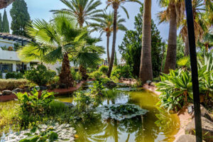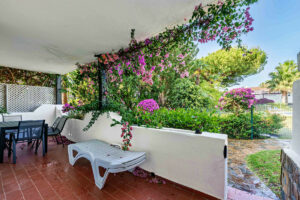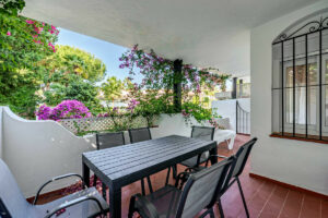 Este magnífico apartamento en planta baja se encuentra en Vivero de Marbella, un tranquilo complejo residencial de poca altura situado en la prestigiosa zona de Sierra Blanca, en la Milla de Oro de Marbella, entre Imara y Le Blanc. Recientemente renovado con materiales de alta calidad, ofrece un moderno diseño de concepto abierto. Cuenta con una cocina totalmente equipada con barra de desayuno y un luminoso salón-comedor que da acceso a una acogedora terraza con zonas de estar y comedor al aire libre, con salida directa al jardín comunitario. El dormitorio principal dispone de baño en suite y acceso a un balcón privado, y los otros dos dormitorios comparten un baño. Todos los dormitorios tienen armarios empotrados, y la vivienda también incluye un práctico lavadero independiente. El complejo está muy bien cuidado y ofrece hermosos jardines, estanques decorativos con cascadas, una piscina y aparcamiento comunitario. Es un lugar ideal para vivir con tranquilidad y confort en una de las zonas más exclusivas de Marbella. Con una licencia turística en vigor, la propiedad representa una excelente oportunidad de inversión.