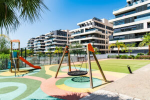 ofrece piscina comunitaria, pistas de pádel, gimnasio, parque infantil, gastrobar privado para residentes y servicio de conserjería. Todo ello en un entorno seguro, cuidado y con un ambiente familiar.